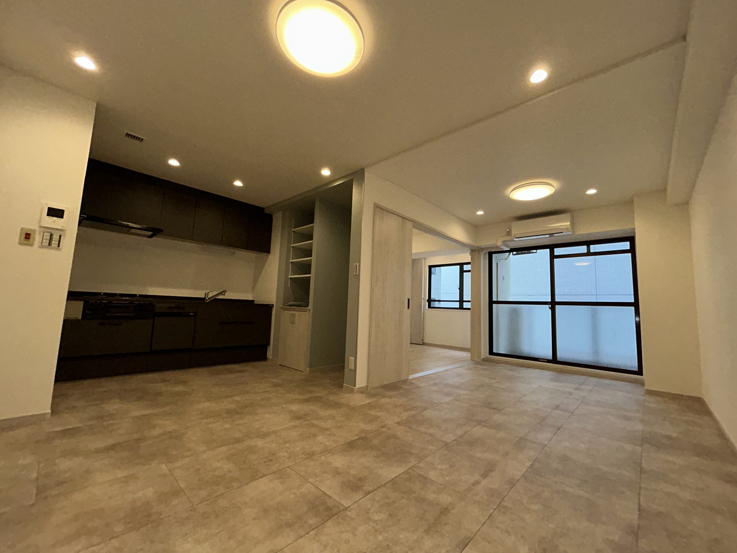 また、40年以上の築年数が経過したマンションであり、長期間リフォームなどを行っていなかったため、全面的に改修しなければならない状況でしたが、立地条件やエリア性の問題、また間取りなどの需要に関する調査を踏まえ、ファミリー層から単身者まで様々な需要が見込めたことから、3DKから2LDKにフルリノベーション、LDKと接続する部屋をオープンにして1LDKとしても使用できるように工夫しました。